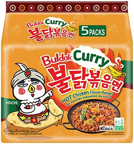 Samyang hot chicken curry flavor ramen halah 493 oz 140g x5 45 out of 5 stars 3234. New flavor samyang halal curry hot chicken ramen samyang hot chicken ramen with curry 140g x 5 pack hot chicken flavor ramen curry curry buldak bokkueummyun extremely spicy new 14 from 1000 free shipping on orders over 2500. Theres a slightly bitter aftertaste that youll either wind up loving or hating it im obviously the latter.